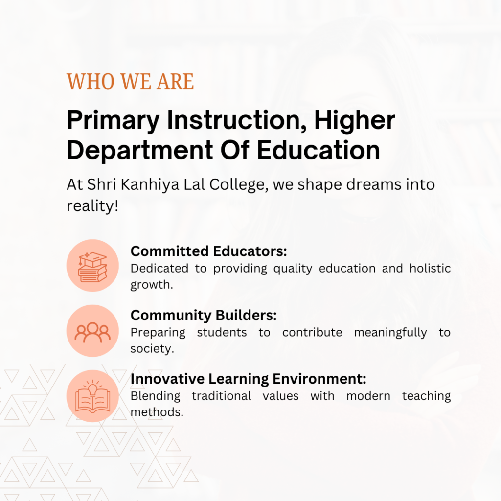 Shree Kanhiya Lal Mahavidyalay is a well-known educational institution dedicated to delivering a comprehensive education that fosters academic excellence, personal development, and societal ideals. Located in an easily accessible locale, the institution acts as a cornerstone of higher learning in the community, offering a range of undergraduate and postgraduate programs aimed to equip students for successful