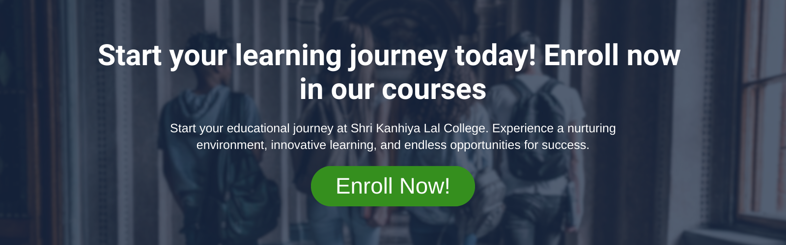 Shree Kanhiya Lal Mahavidyalay is a well-known educational institution dedicated to delivering a comprehensive education that fosters academic excellence, personal development, and societal ideals. Located in an easily accessible locale, the institution acts as a cornerstone of higher learning in the community, offering a range of undergraduate and postgraduate programs aimed to equip students for successful